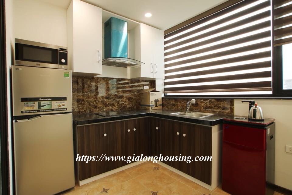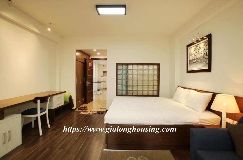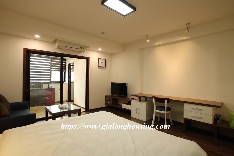 This fully furnished apartment is located in Cat Linh street, not far from Pullman and Hoang Cau. The total area is 35 sq m, with all furniture and equipment is fully provided. The rent includes : cable TV, wireless internet and tap water.