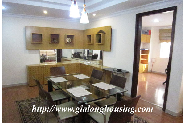 The total area of this apartment is 153 sq m with 04 bedrooms and 02 bathrooms. The apartment is quite nice and bright with full high quality furniture. The furniture are modern and nice, suitable for long term staying time. You can enjoy the professional management, security 24/24, international schools, park, golf court, swimming pool.