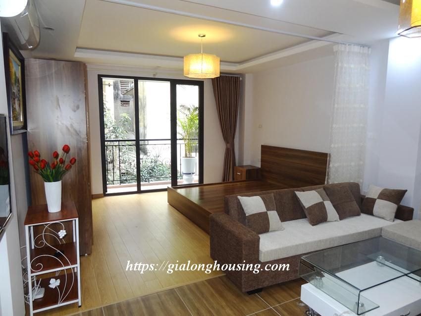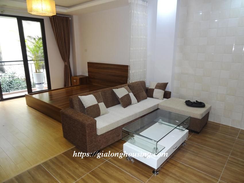 This is a very nice house that is located next in Hoang Cau street. The land area is 40 sq m. All furniture and equipment are good and modern. The apartment has a curtain to separate the living area and the bed. The whole apartment is full of sunlight with small balcony.