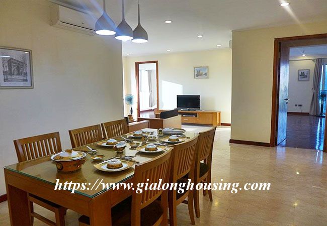 This nice apartment is located in L building with the nice view to Ciputra golf court - the biggest golf court in Hanoi. The apartment is full of sunlight and fresh air. The total area is 154 sq m, including 03 bedrooms and 02 bathrooms, suitable for long term contract. The apartment is fully furnished and suitable for long term contract. The building has gym, swimming pool and security 24/24.