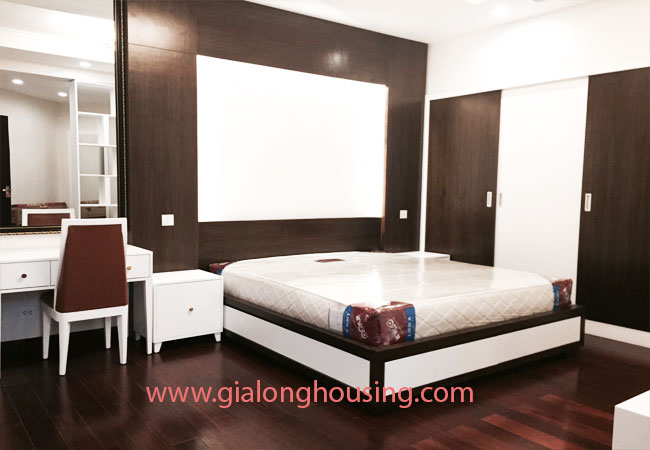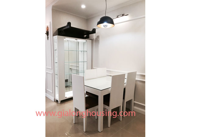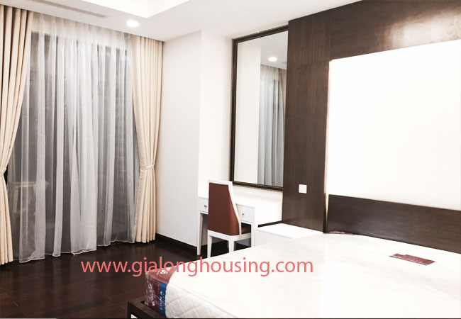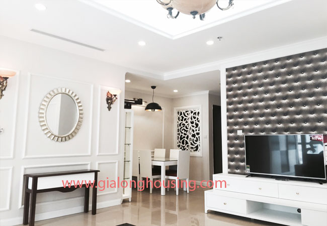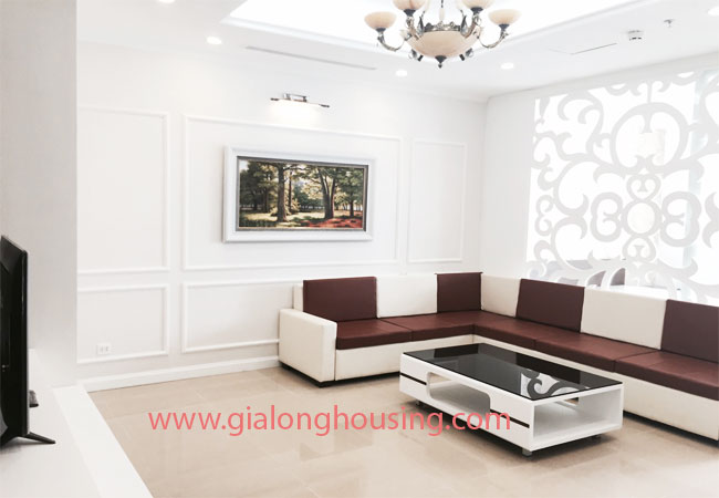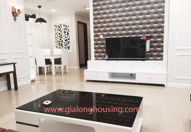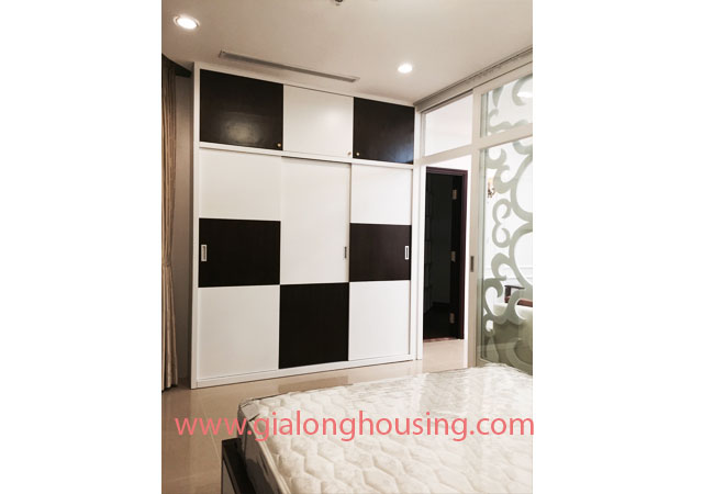 Nice furnished apartment for rent in R2 building, Royal City.Located on high floor this flat was decorated 3 bedrooms with full bedding: beds, wardrobes, bedside shelves... and especially, in the master bedroom balcony has a small tea table and chairs, in here sure to be an ideal place for you to sit sipping delicious tea and contemplate the shimmering beauty of the city. In living room has one Tivi, a large light soft sofa, tea table and paintings...The apartment was fully equipped fixtures and you only need to bring personal items to stay