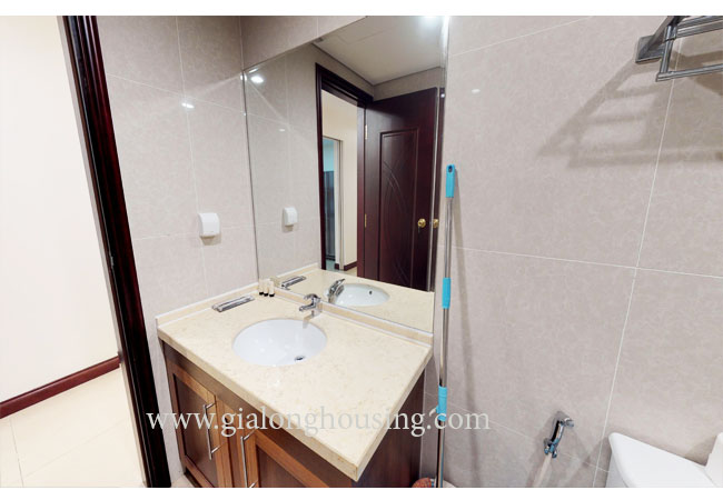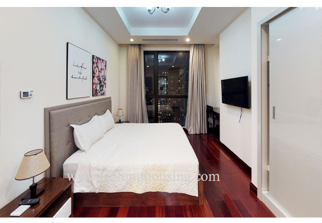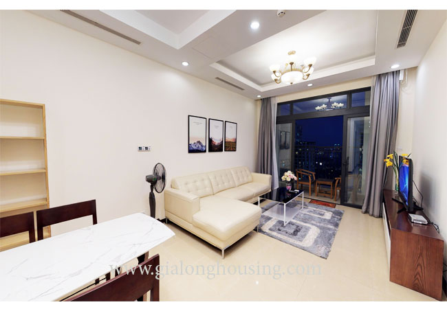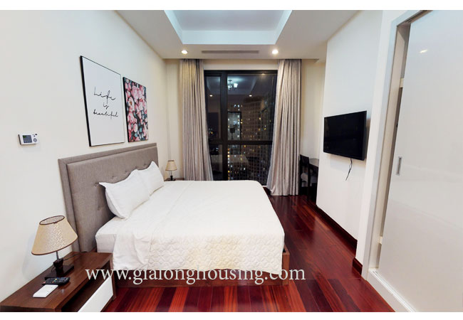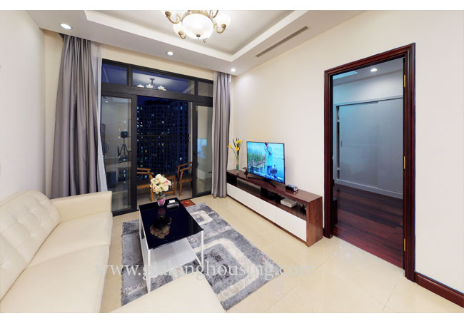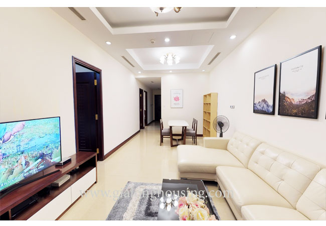 This is bright apartment is located in high floor of R5 building, Royal City Hanoi. The apartment has 02 bedrooms and 02 bathrooms in the size 105 sq m. The living room is full of sunlight and fresh air. The apartment is fully furnished and ready for the tenants to move in immediately. Please contact us to visit it today.