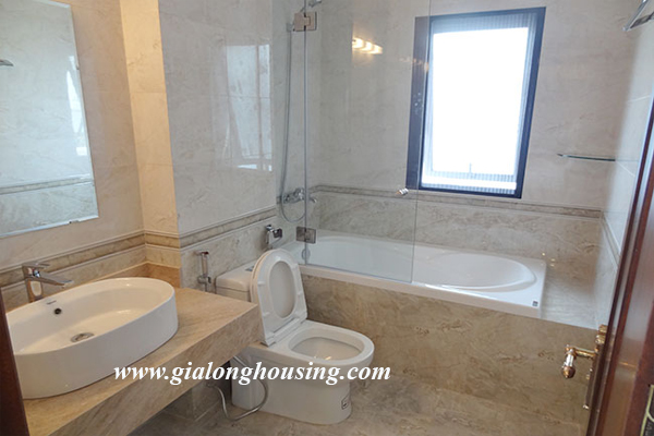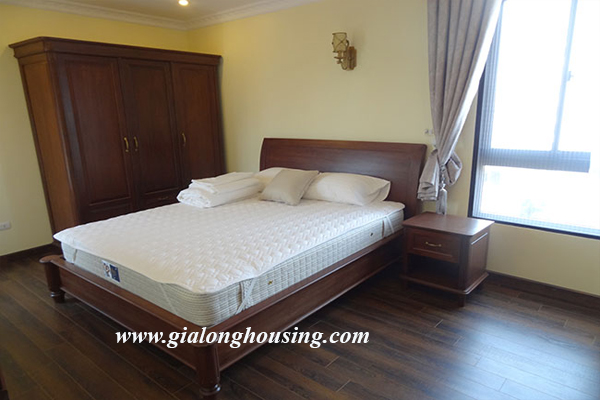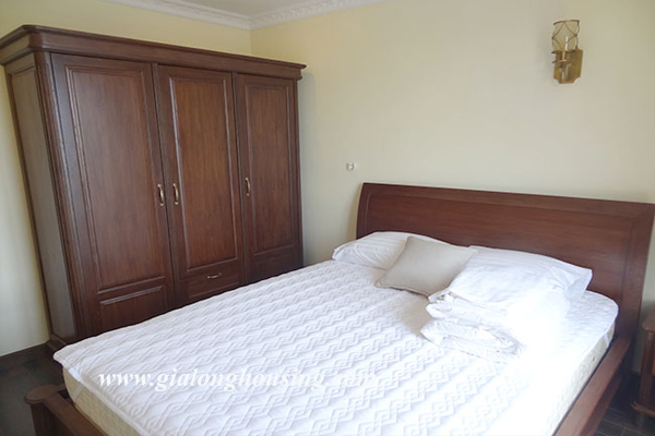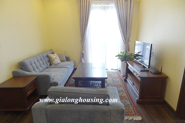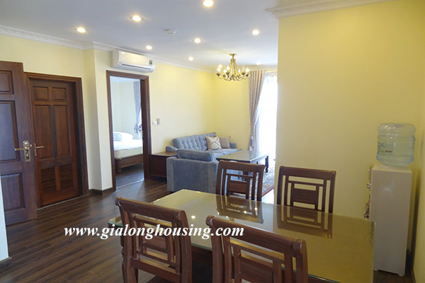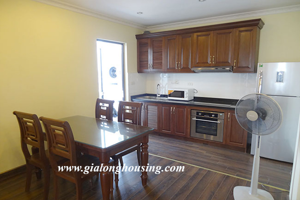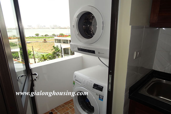 Nice furnished apartment for rent in Tay Ho district.It has 2 bedrooms, 2 bathrooms, living room, kitchen, dining room and a big balcony. The master bedroom and its en suite bathroom are spacious. Kitchen is well equipped with electronic appliances, while the living room appears in decent style. The balcony is big enough for a couple of chairs and table so that you can take a sit, enjoy some drink and beautiful lake view.