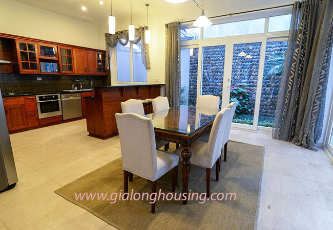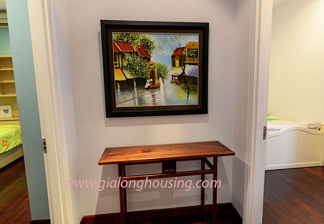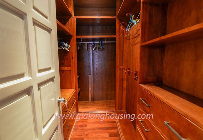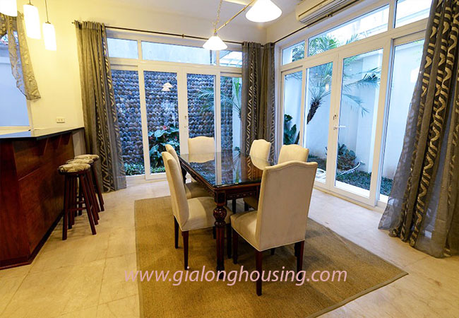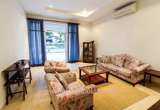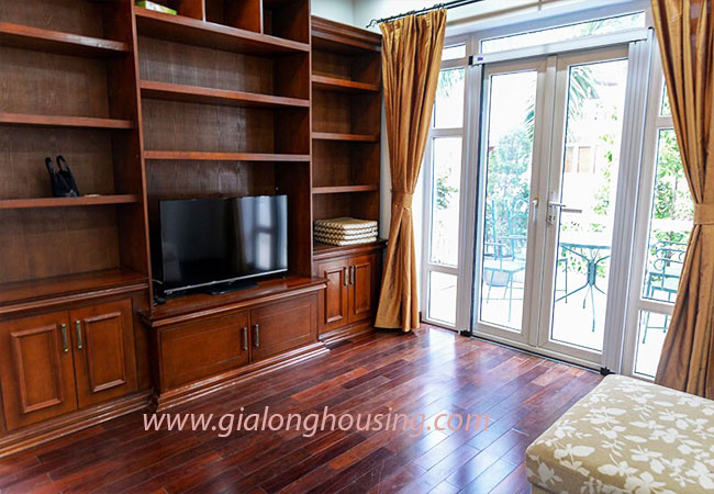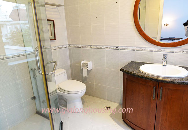 Nice furnished villa for rent in Block T4 Ciputra Hanoi. It has living room, family room, 03 bathrooms, front yard, and back yard. The rental house is renovated to satisfy the needs of the family. All of the rooms are designed to get the natural light from the aluminium frames windows, or with the access to the balcony facing to the quiet neighborhood. The house is nicely decorated with neo-clasiscal style furniture and wall paper (but the wall paper can be taken out to be painted with plain color) to give it an elegant look.