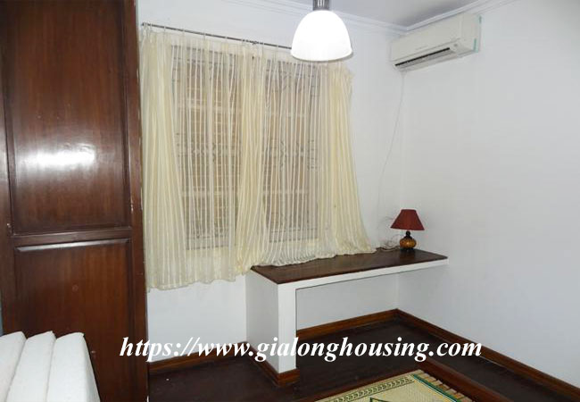 A nice house for rent in Dao Tan street,Ba Dinh district. The house has a courtyard and roof terrace. It is very quiet lane ,motorbike storage area, lots of light. It has nice balcony, a separated kitchen, large living room, fully furnished.