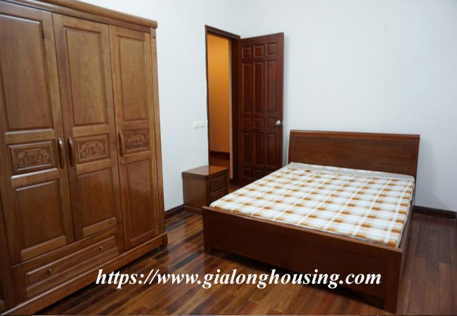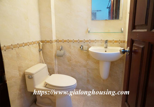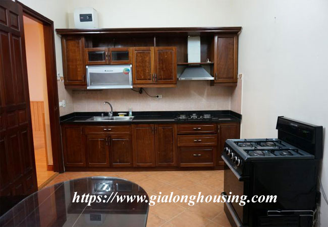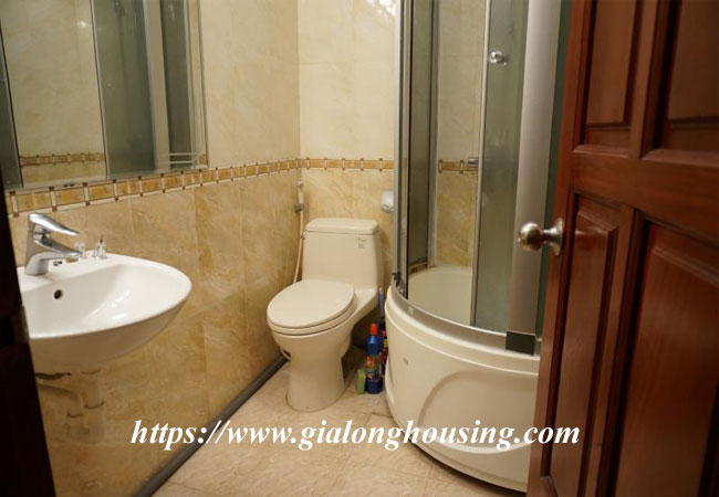 The land area is 150 sq m. This house is large and will the ideal choice for tenants who are looking for a cozy accommodation in Ba Dinh district. It is not far from Lotte Tower, Australia Embassy, Japanese Embassy, Daewoo hotel. The living area is 250 sq m with 03 floors. The house has 04 bedrooms and 03 bathrooms with basic furniture such as : kitchen cabinet system, bed, wardrobes.