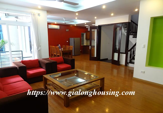 This nice house is located at lane 1 Au Co street (Tu Hoa street), not far drom Sheraton and Intercontinental hotel, West lake and Xuan Dieu street. From balcony and windows, we can enjoy the beauty and quietness of West lake. The house has a large yard that could be a parking area or playground for kids. There are 04 bedrooms and 05 bathrooms. It is fully furnished.