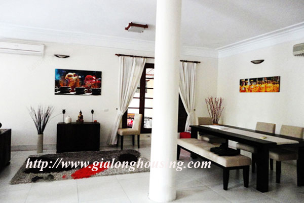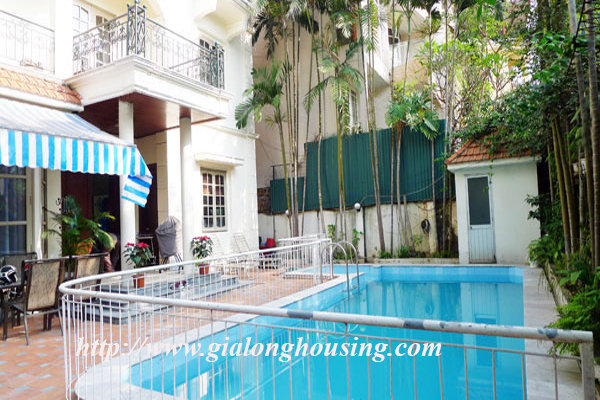 A nice villa in Tay Ho - West Lake area for rent, it has a nice out-door swimming pool with sunlight, nice yard, spacious lounge area, separated kitchen, 04 bedrooms, 04 bathrooms, 01 office room or guestroom and one store room. This vill is located in Dang Thai Mai street direct car access, lots of windows and light. The bedrooms come with cloth storages, timber floor, ensuite bath & walk-in shower, full air-conditioners, provide with washing machine and dryer, oven, fridge, dish washer.