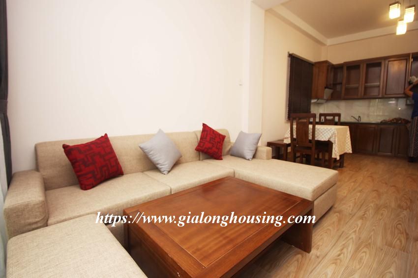 Fully furnished apartment is located in Hoang Hoa Tham, Ba Dinh district. The total area is 50 sq m, 01 bedroom and 01 bathroom. The apartment is ready for the tenants to move in and stay for long time.