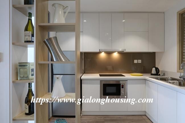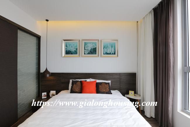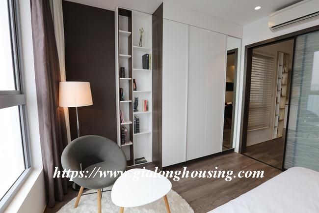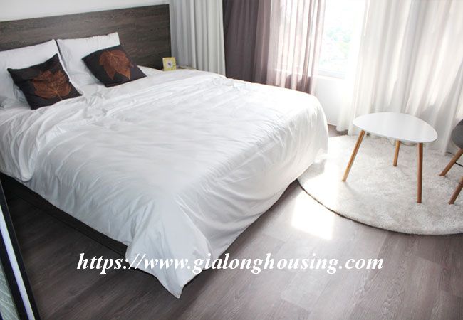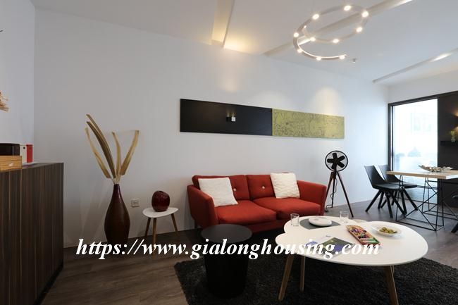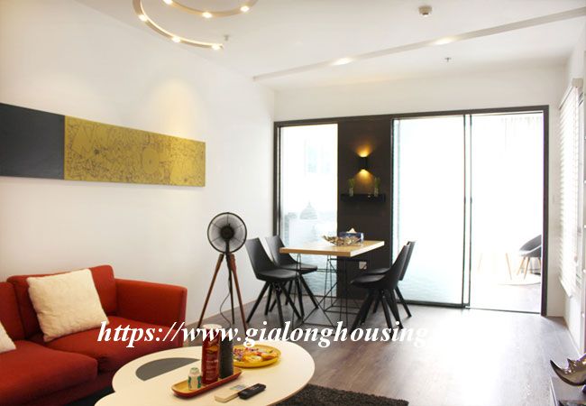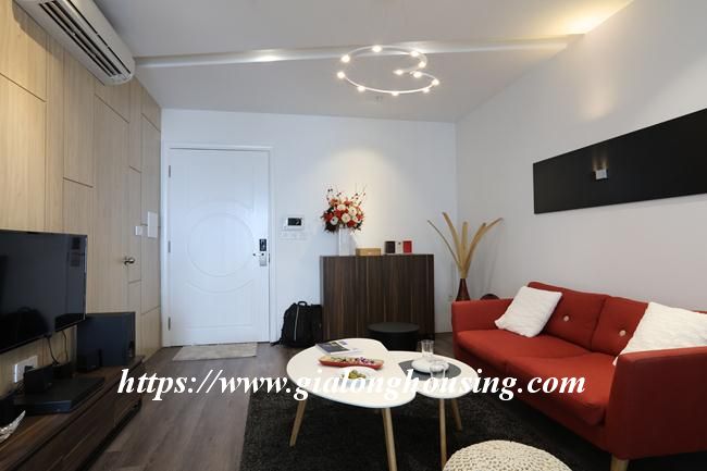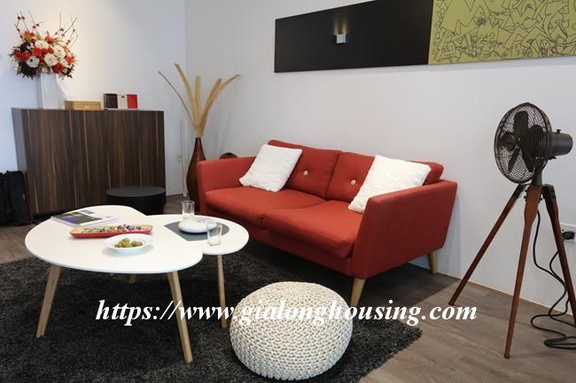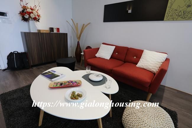 This type of one bedroom apartment is quite unique in Vinhomes Nguyen Chi Thanh. Each floor has only one apartment with one bedroom. The total area is 56 sq m, this apartment is suitable for single or couple without children. The apartment has a modern design : the bright living room next to the bedroom, the kitchen and the bathroom is next to each other.