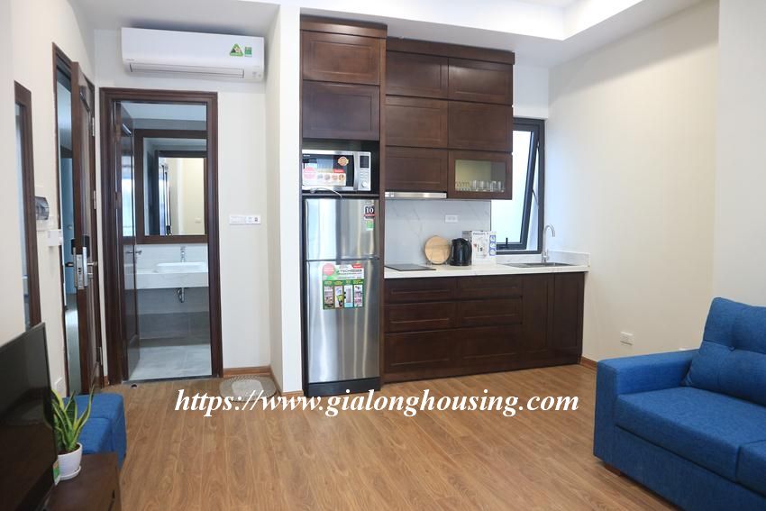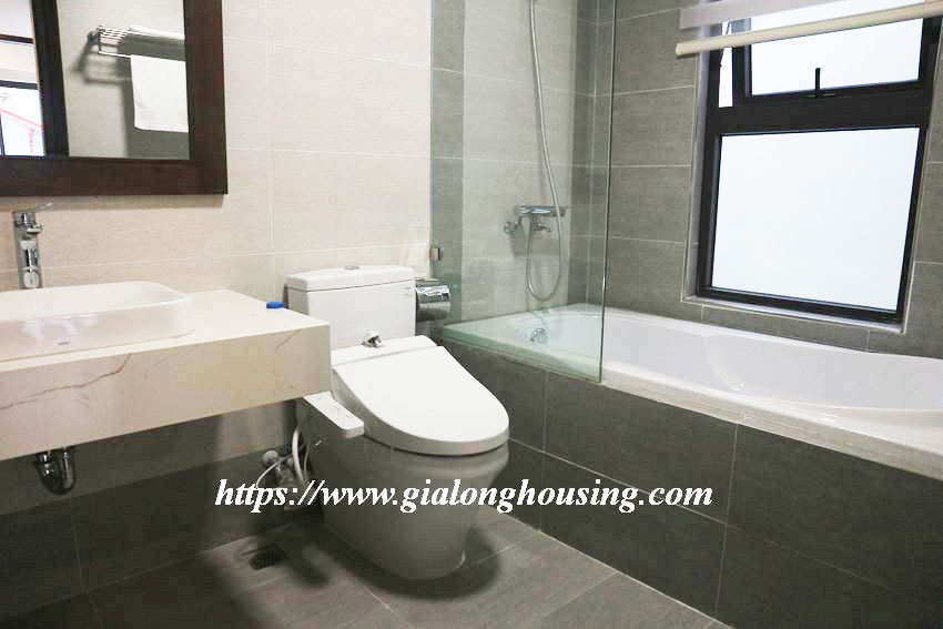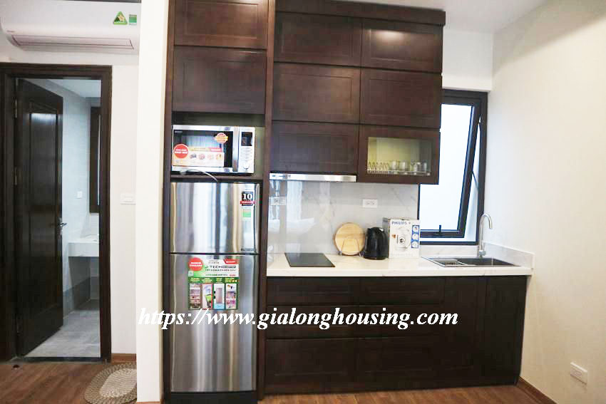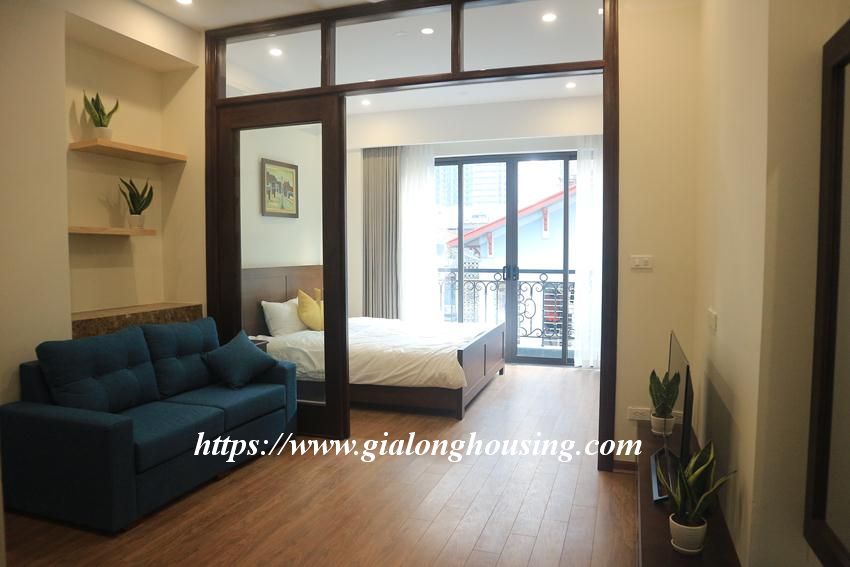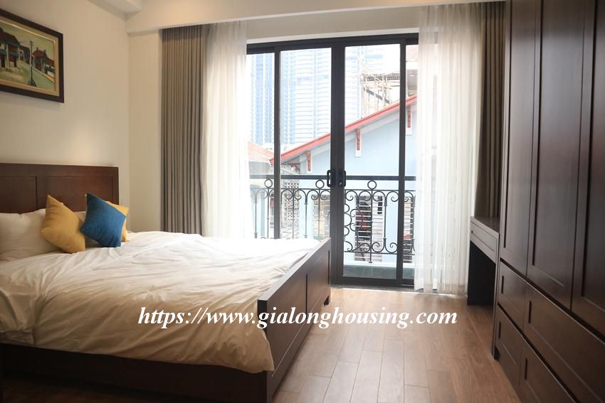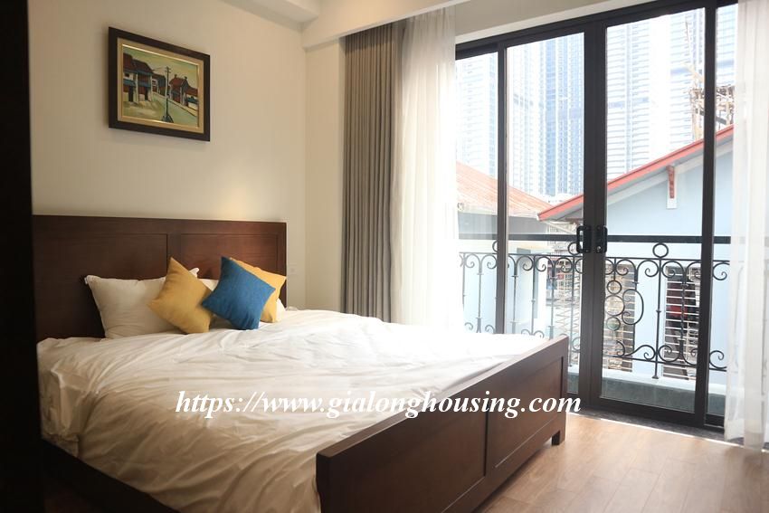 Bright serviced apartment is located just one minute from Japanese Embassy. The total area is 45 sq m: 01 bedroom and 01 bathroom. The apartment is fully furnished with good quality furniture and nice decoration. The rent includes: cable TV, high speed internet.
