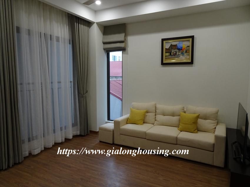 The total area of this apartment is 45 sq m with 01 bedroom and 01 bathroom. The apartment is cozy for staying in a long time with full of service: cleaning, high speed internet, cable TV. The equipment and furniture are provided such as: bed, sofa, fridge, kitchen cabinet system.