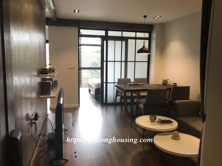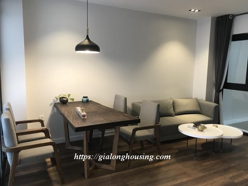 Brand new serviced apartment is located in Dang Thai Mai street, Tay Ho district. The size is 50 sq m: a modern living room, a fully equipped kitchen, a cozy bedroom and a nice bathroom. The apartment is ready for the tenants to move in today, the rent includes : cable TV, wireless internet, tap water.
