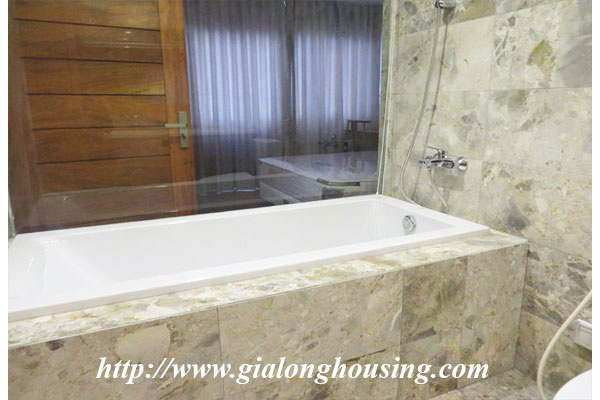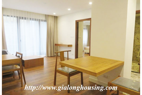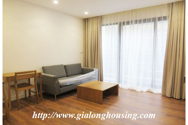 This is a very new apartment for rent in Le Duan street, Dong Da district. The total area is 50 sq m with 01 bedroom and 01 bathroom, suitable for one or two people to stay. All furniture are good and very new. This building offers you full high quality services: water, cable TV, internet, security, cleaning service.