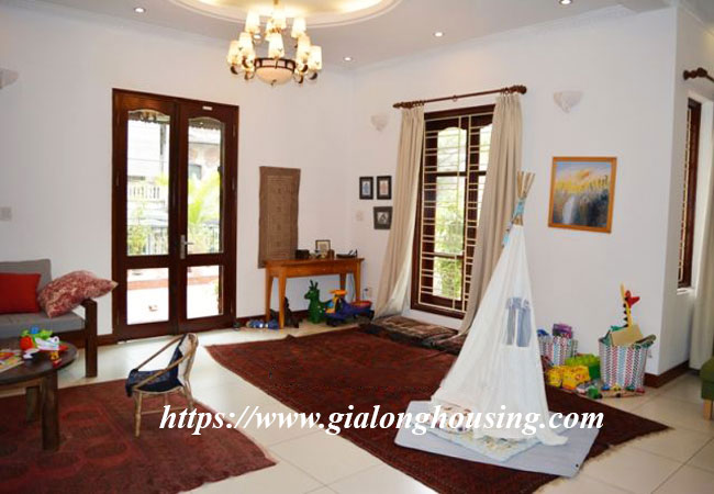 The total land area is 230 sq m, this villa has 05 bedrooms and 05 bathrooms. This will be very suitable for a family or a group of friends to stay in long time. The outdoor swimming pool is located in the courtyard where you can hold a swimming pool party or play with your kids in the summer time. All furniture are modern and comfortable for the tenants to use. Please contact us to visit it soon.
