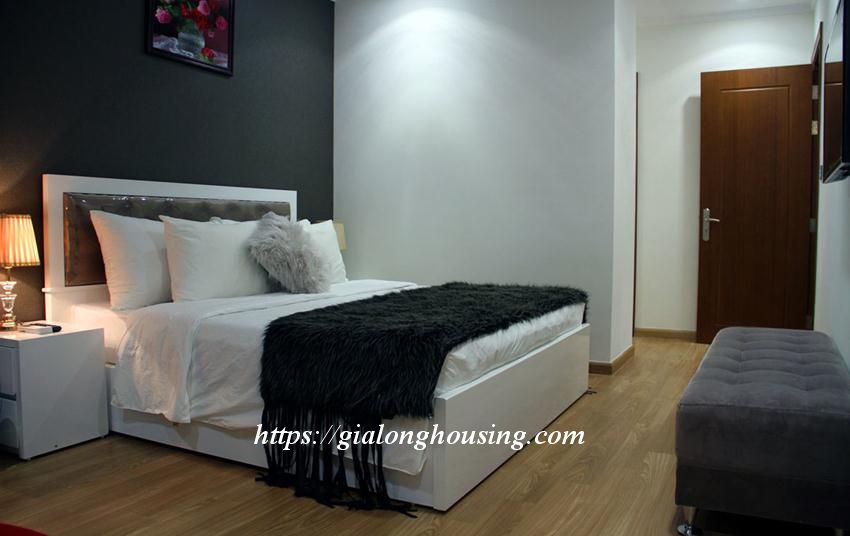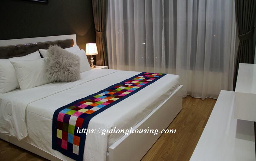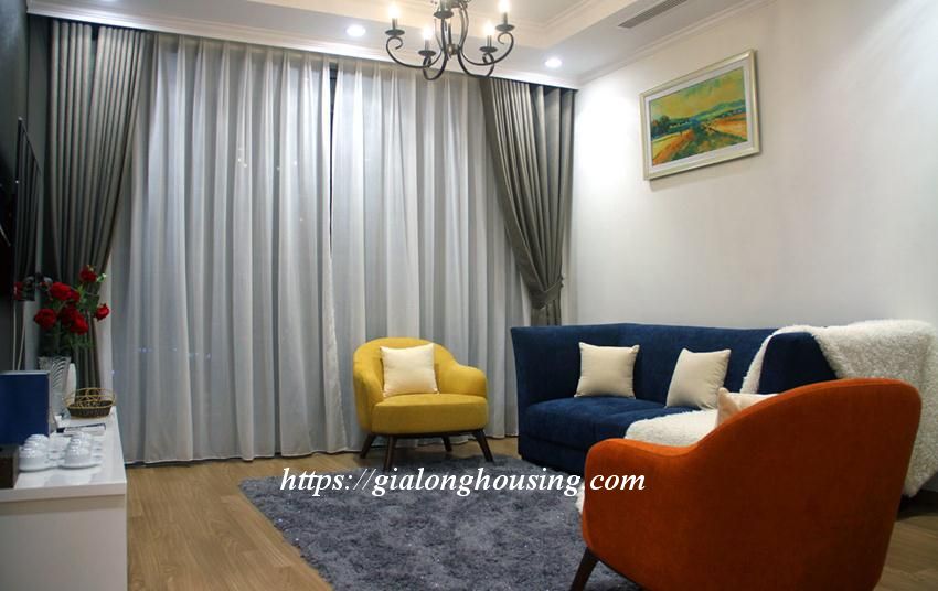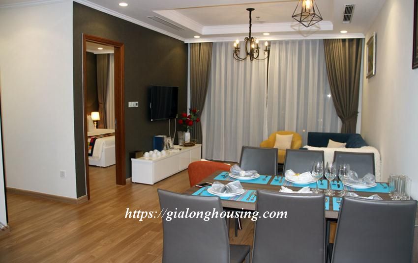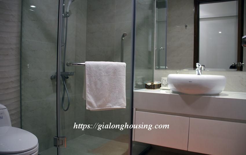 This new and fully furnished apartment is located in high floor of Park 9, Park Premium - Times City. The total area is 118 sq m, including 03 bedrooms and 02 bathrooms. The whole apartment is full of modern furniture and equipment that meet your requirements for long term staying contract.