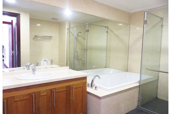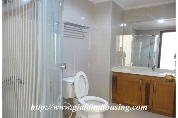 This is a very nice and bright apartment in Royal City for rent with partly furnished. The total area is 109 sq m with 02 bedrooms and 02 bathrooms, suitable for long term contract, The apartment is located in high floor with good view. The urban area is one of the most beautiful place in Hanoi with underground shopping mall, swimming pool, international schools, restaurants, cinema, parks.