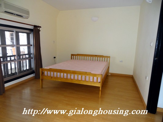 Partly furnished house for rent in Nghi Tam Village,Tay Ho district.The house with area is 200sq m construction 100m2 4 floor designed 03 bedrooms,03 bathroom,01 working room,partly furnished,wooden floor.House for rent faces the lake, beautiful with lake view and fresh air. It is full of natural light and wind. Located in Nghi Tam village, it is 5 minute walking to Xuan Dieu area where you find all facilities you need for life