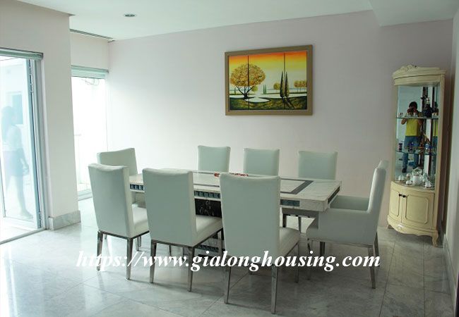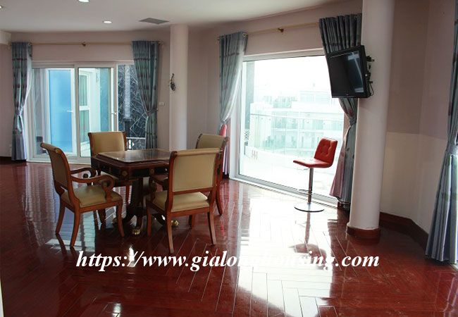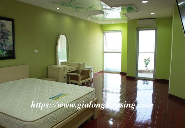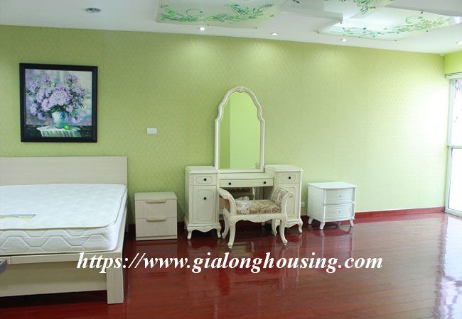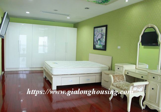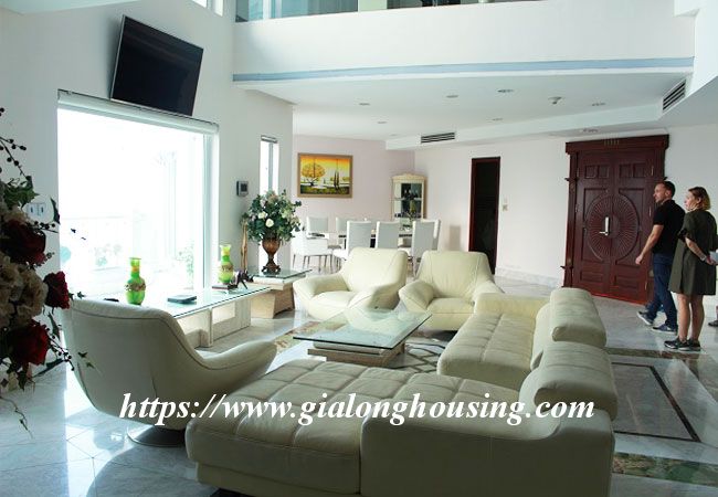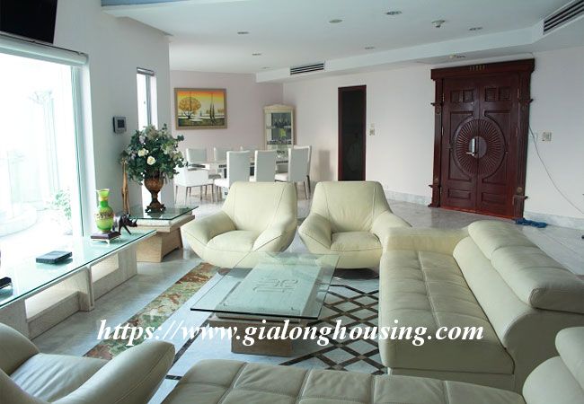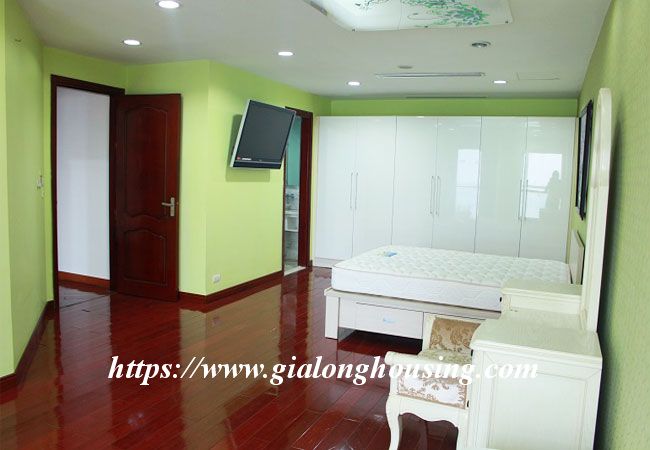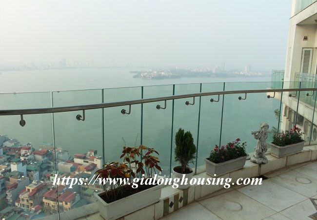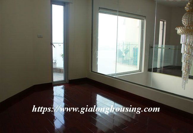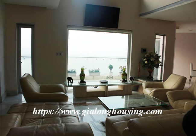 This beautiful penthouse is located on the top floor of Golden Westlake building, the high quality building at Hoang Hoa Tham and Thuy Khue street. The total area is up to 350 sq m, including 02 floors. There are 4 big bathrooms and 4 big bedrooms that are all modern and bright. The whole apartment is full of natural light and fresh air. From the balcony and windows, you can see the panoramic view of West lake.