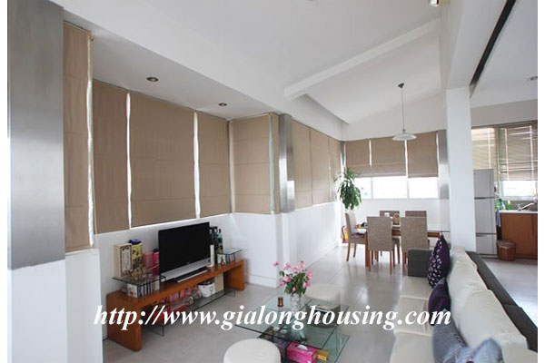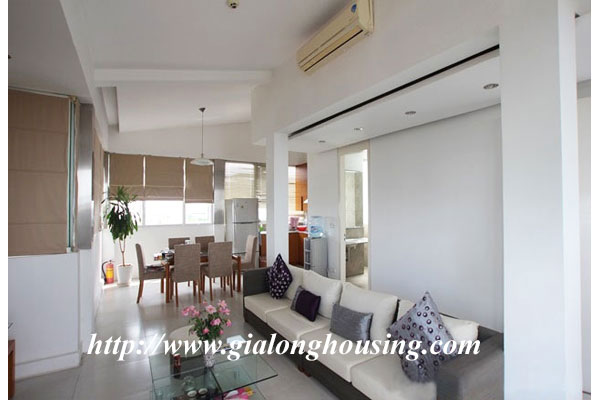 This is a very nice apartment in Nguyen Truong To street, Truc Bach area. The total area is up to 170 sq m with 02 bedrooms and 03 bathrooms. There is a so big balcony with open view. All the room are bright with large glass window where the natural light and fresh air come in. The location is good, between Hanoi City center and Tay Ho - expat district