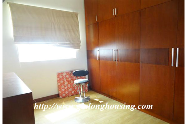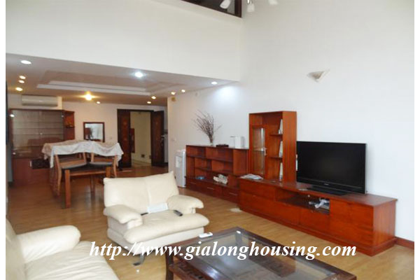 This is a very spacious duplex apartment in G building, Ciputra urban area, Tay Ho district, Hanoi. The total area is 170 sq m , with 03 bedrooms and 03 bathrooms, The penthouse has a good view to both Ciputra and West lake. All furniture are installed and set up. The building has security, swimming pool, gym,.
