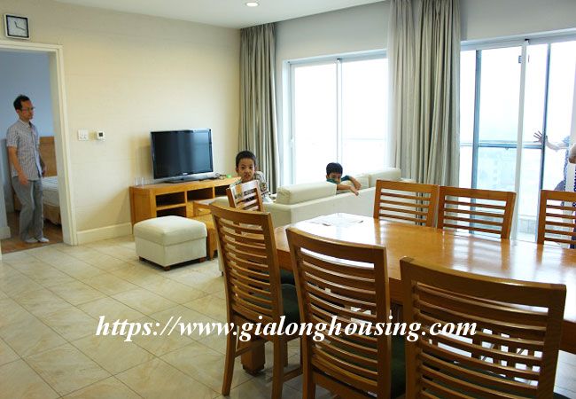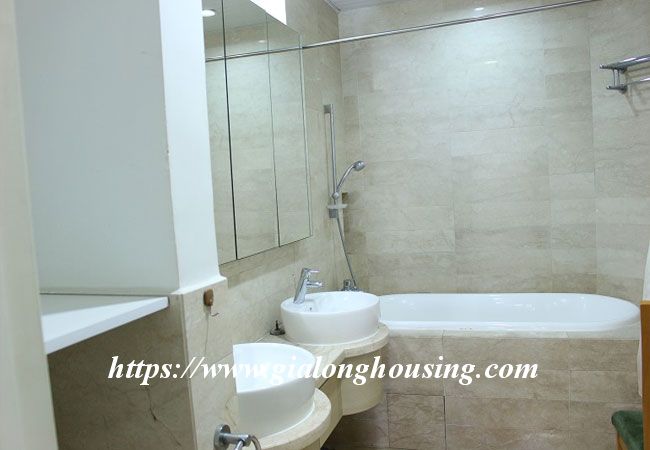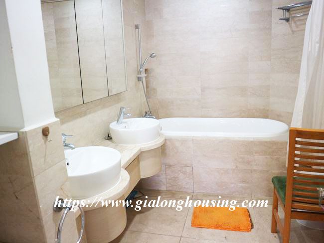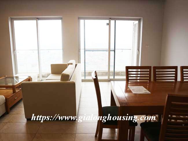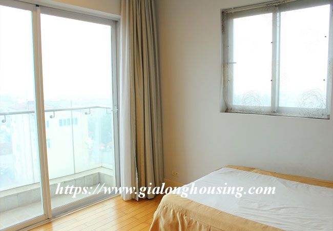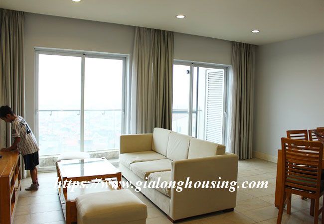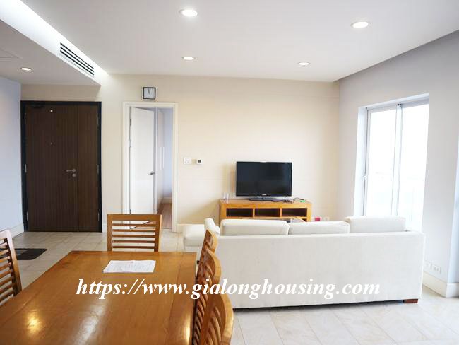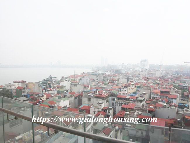 This nice apartment has a very good view from both balcony and windows. From the balcony, and the windows,a corner of West lake can be seen. The total area is 128 sq m, including 03 bedrooms and 02 bathrooms. The whole apartment is full of natural light and fresh air. It is fully furnished so that the tenants can move in immediately.