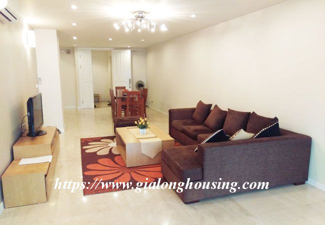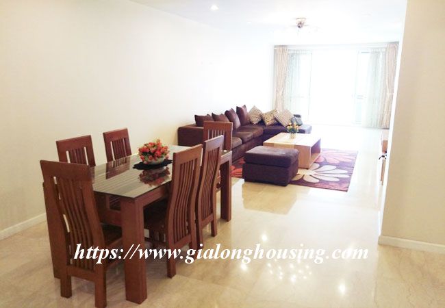 This big apartment is located in high floor of Ciputra urban area, Tay Ho district, not far from Thang Long bridge and Pham Van Dong street. The total area is 153 sq m, including 04 bedrooms and 02 bathrooms. The windows are all big make the rooms bright and nice with natural light. Please contact us to visit it today.