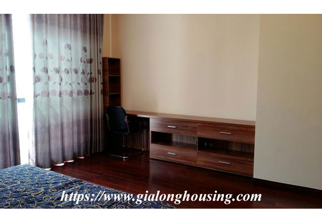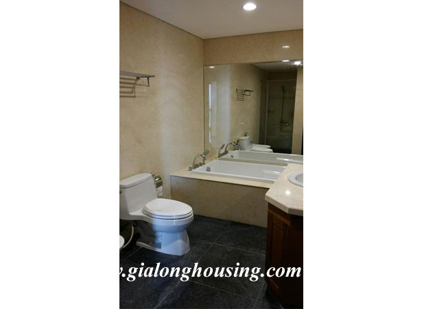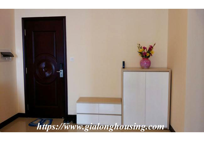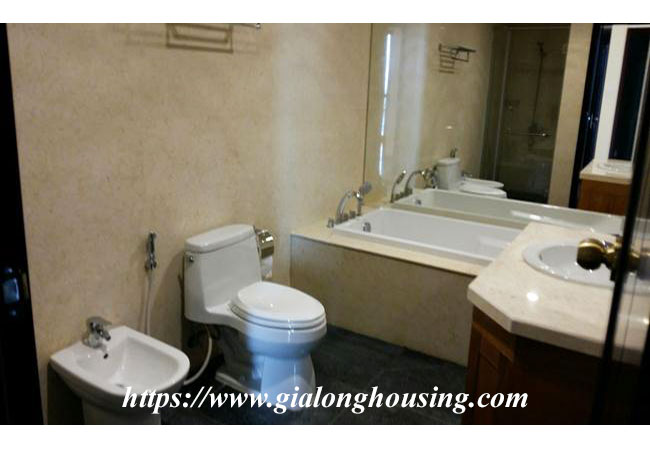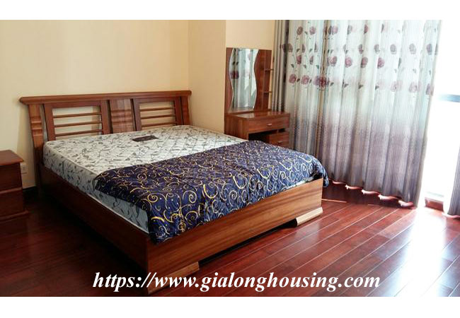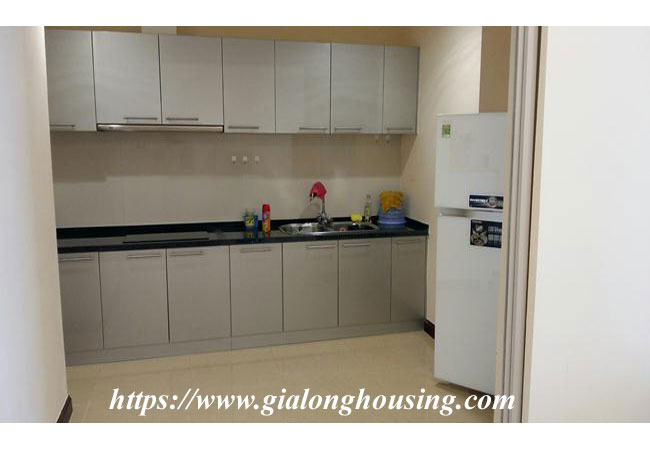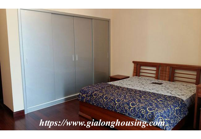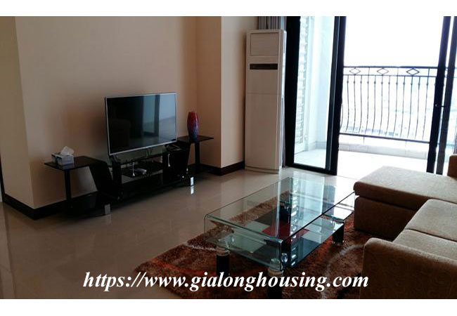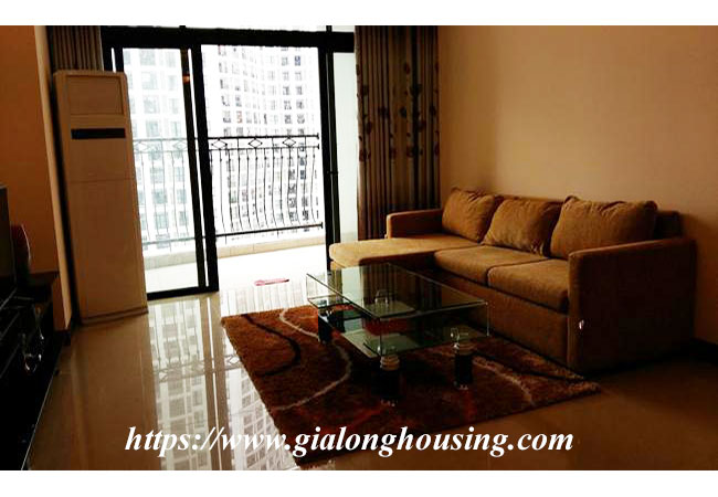 The apartment is located in R4 building. The total area is 132 sq m, with 03 bedrooms and 02 bathrooms. The living room is very bright and nice with large windows and balcony. The whole apartment is equipped with modern furniture. The building has security 24/24, swimming pool, reception, underground shopping mall.