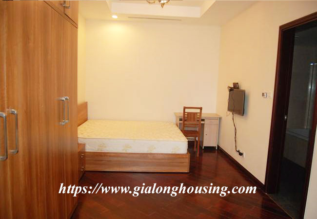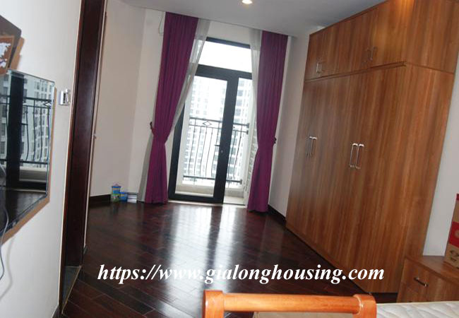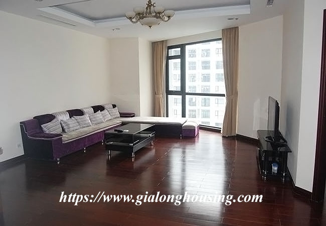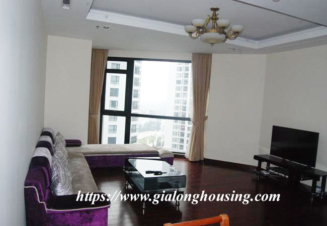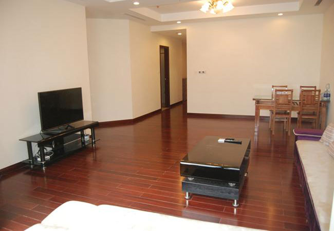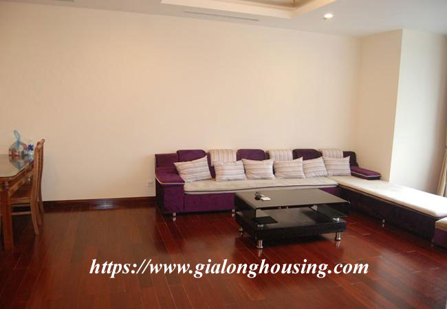 Nice furnished apartment is located at the high floor of R1 building, Royal City urban area. The total area is 111 sq m with 02 bedrooms and 02 bathrooms, suitable for long term contract. The whole apartment is bright and nice due to large glass windows and balcony. The furniture are all new and modern so that the tenants can move in and feel like their own home.
