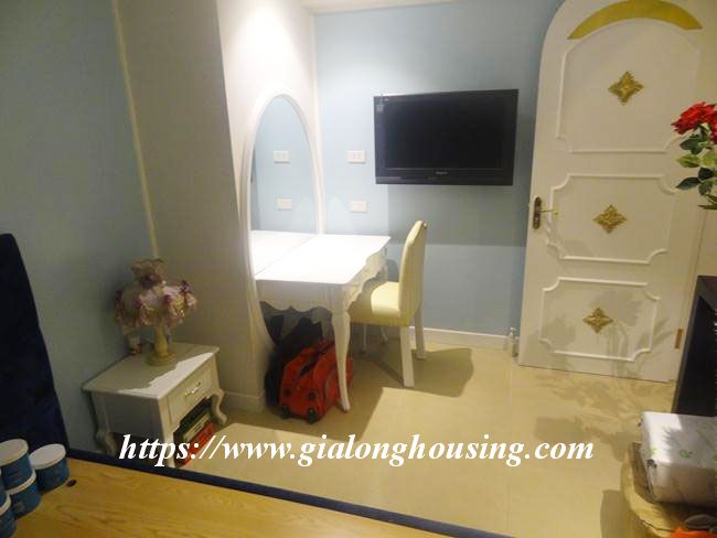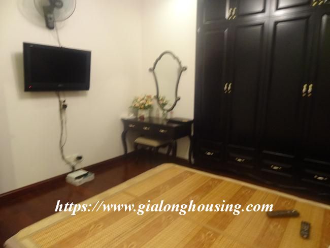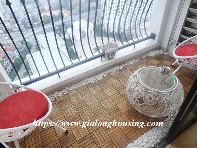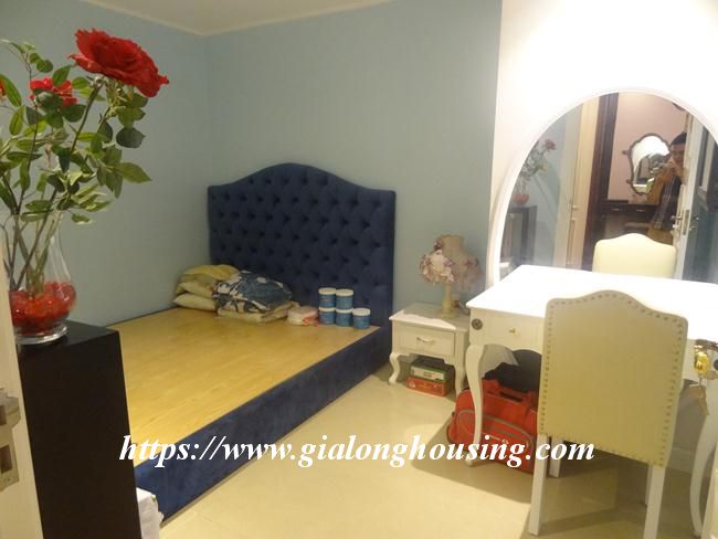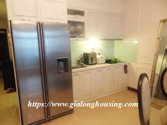 The apartment has the western design with all the furniture are imported from German. The total area is 112 sq m, including 03 bedrooms and 02 bathrooms. The whole apartment is full of sunlight with the open view to Royal square and Nguyen Trai street. The apartment is available for rent today.