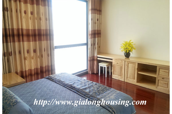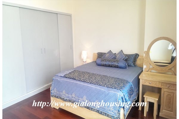Royal City Hanoi apartment for rent.This apartment has 03 bedrooms and 03 bathrooms. All rooms are nice and comfortable. All furniture are nice and beautiful. It is decorated in nice and Western style, ideal home for family/friends. The tenants can enjoy the high quality services such as four season swimming pool, security, gym, shopping center, international schools.