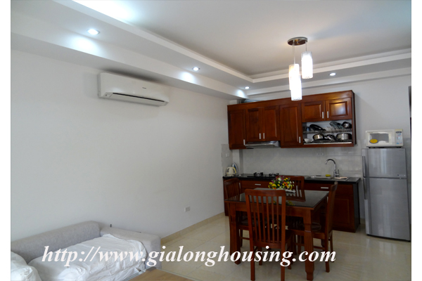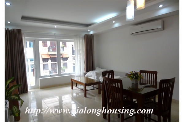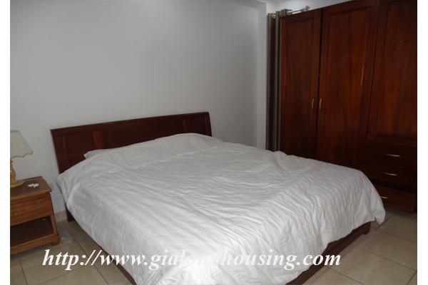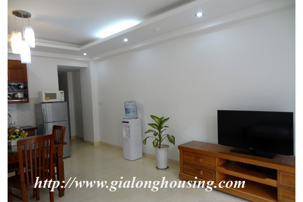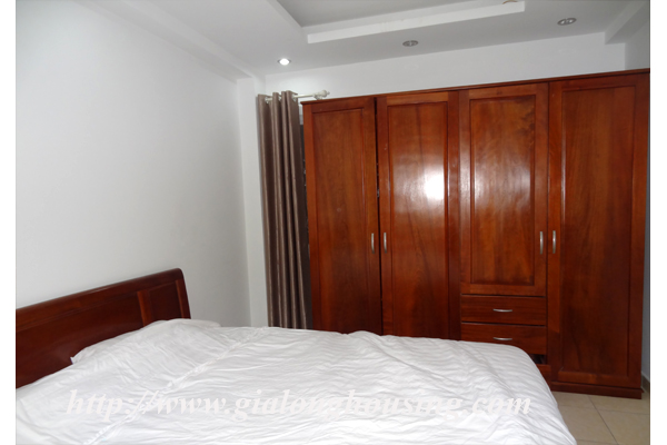 Serviced apartment rental in Pho Duc Chinh street, Tay Ho district. The use area is 60 sq m including 1 bedroom, 1 bathroom, living room and modern kitchen. Fully furnished and equipped. Living space is quiet and airy. Facilities : air conditioners, internet connection, phone connection, cable television, professional management, reception, 24/24 hour security, stair