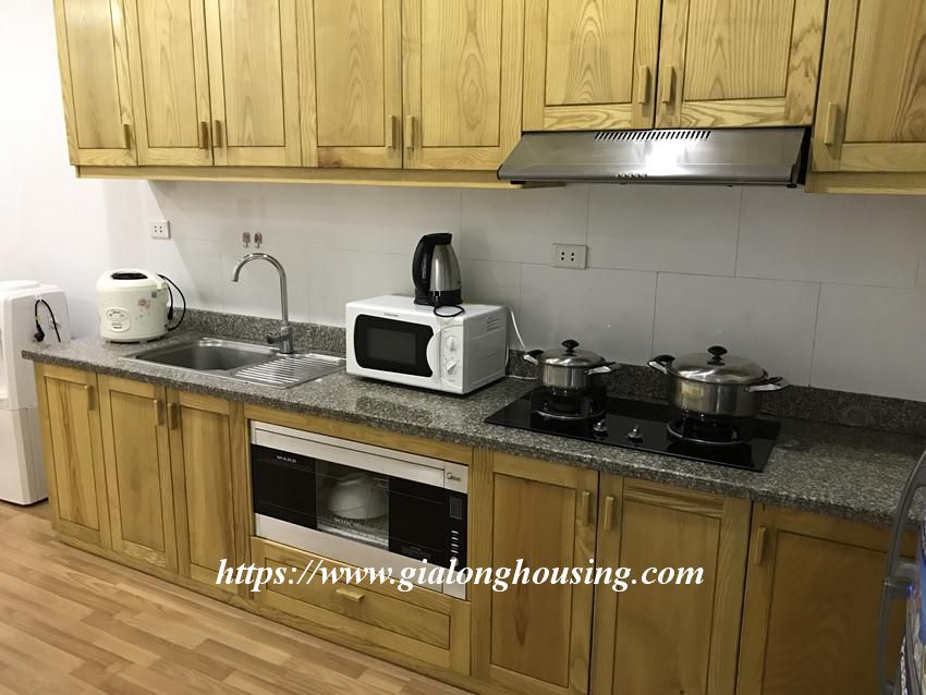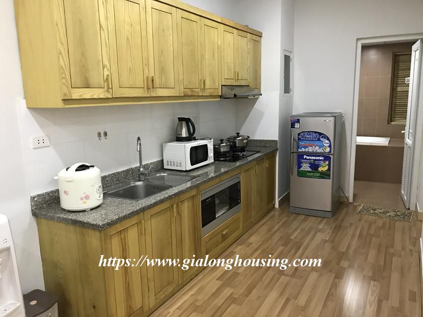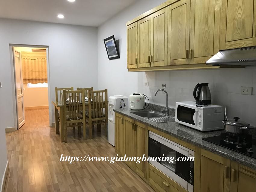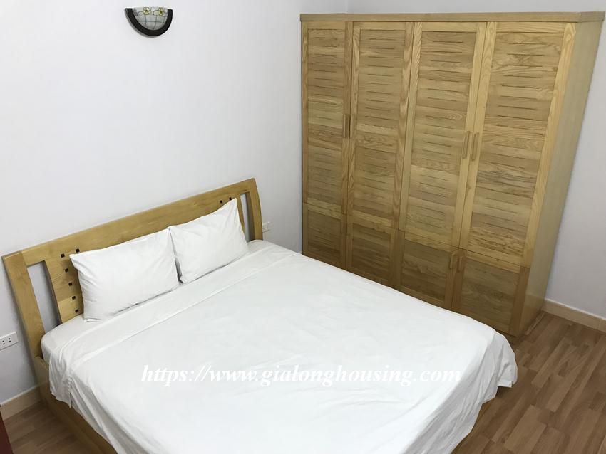 This serviced apartment is located in 535 Kim Ma, walking distance to RMIT, Daewoo hotel, Thu Le lake and park. The total area is 80 sq m, including 02 bedrooms and 01 bathroom. The rent includes: cable TV, internet, cleaning service and tap water.