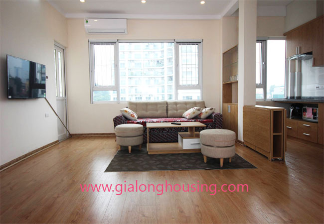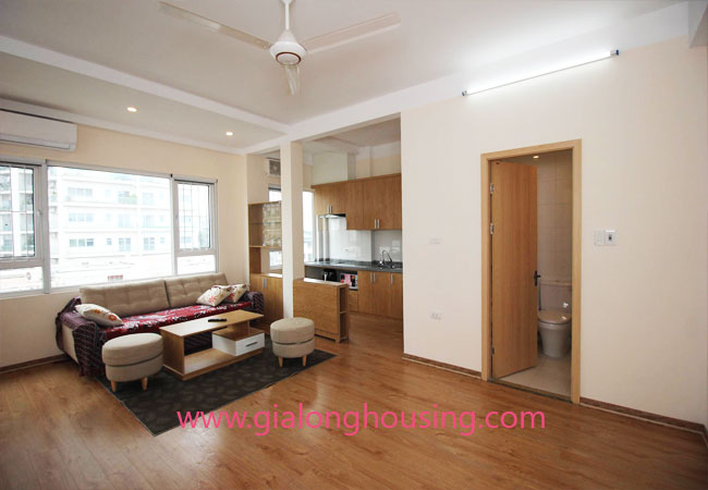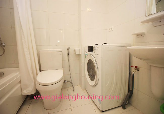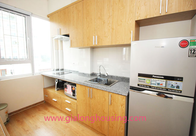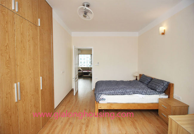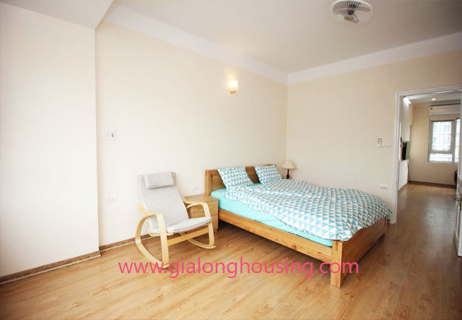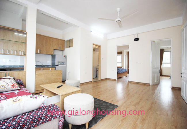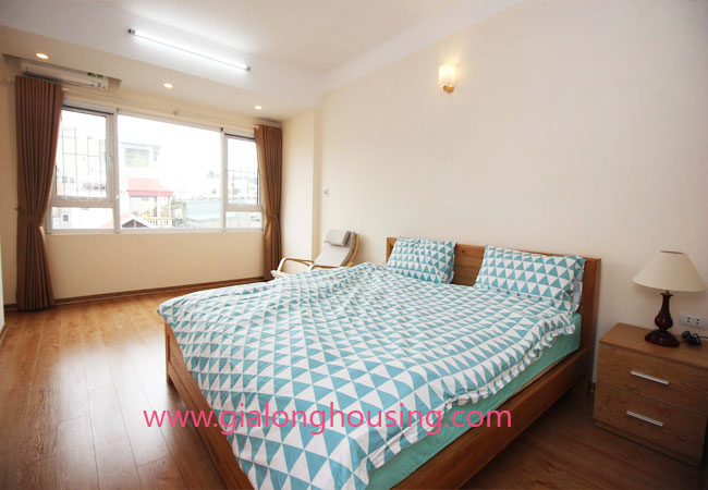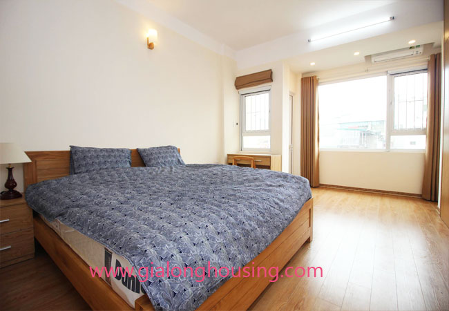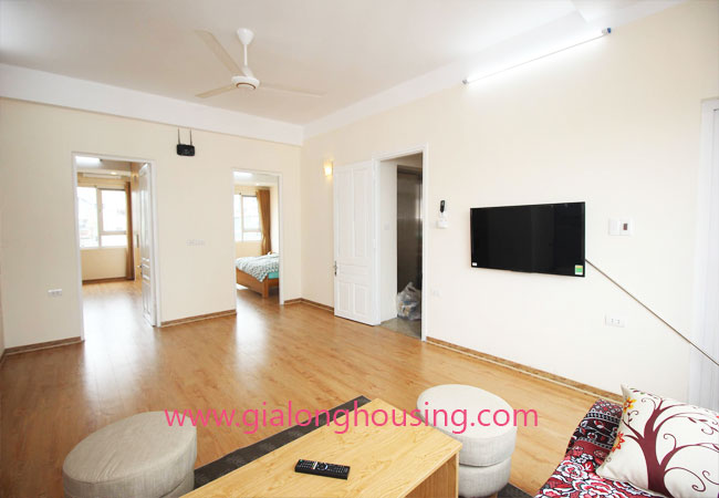 Serviced apartment for rent in Thuy Khue street, Tay Ho district.The use area is 80 sq m, designed with 2 bedrooms ,1 bathroom, nice living room and a kitchen. Living space is bright with wooden floor. It is well equipped and furnished. Facilities : air conditioners, internet connection, phone connection, cable television, good security, elevator, etc… Nearby supermarket, banks, hotel, restaurants,…