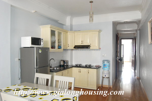 Nice serviced apartment for rent in Tran Phu street,Ba Dinh district Ha Noi. The size 50sqm composed of a living room with kitchen, 01 bedroom and 01 bathroom, the apartment is very light, with wooden floor
