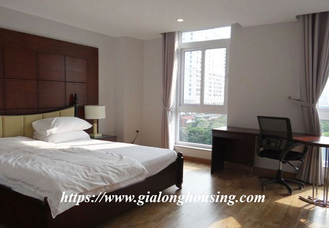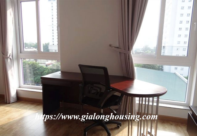 The small and cozy apartment is located in Dong Da district. The total area is 50 sq m with 01 bedroom and 01 bathroom. The building provides you full services: cable TV, wireless internet, tap water. The location is good , easy traffic to city center. Please contact us to visit it soon.
