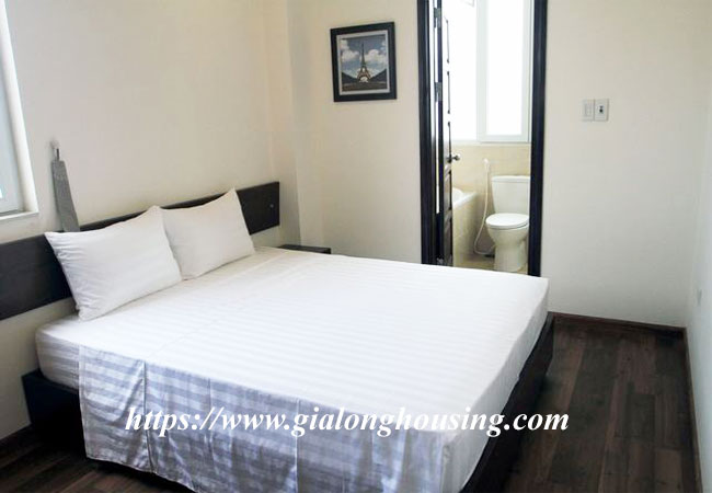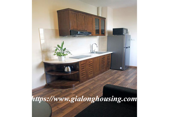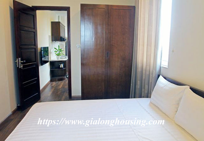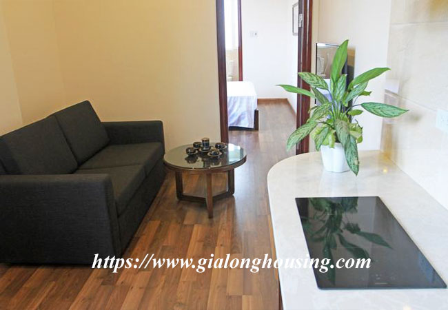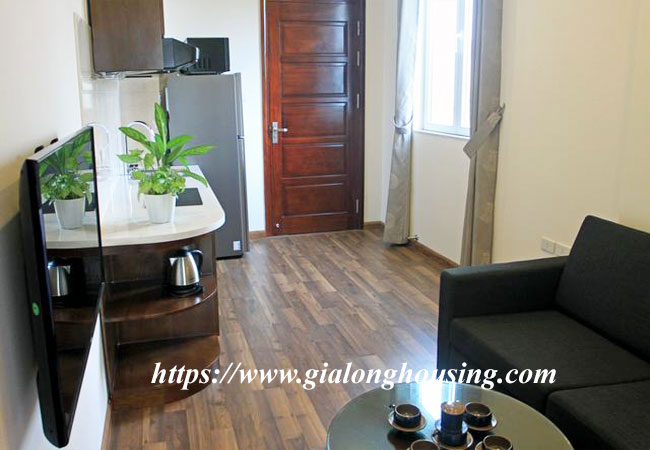 This brand new serviced apartment is located in Le Van Huu street, Hai Ba Trung district. The building has full of services: cable TV (both NHK and Korean channels), cleaning and laundry services 03 times/week, security 24/24, reception, high speed internet. The total area of the apartment is 40 sq m, included 01 bedroom and 01 bathroom with bathtub. Contact us to visit it today