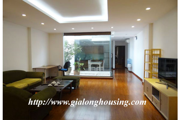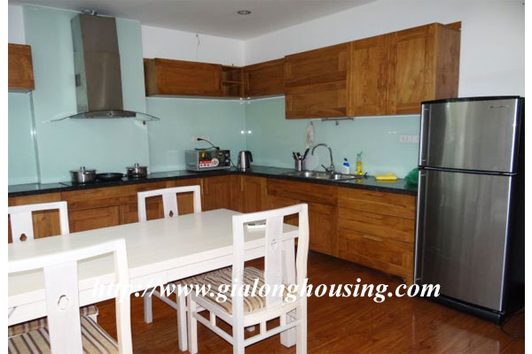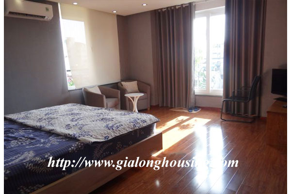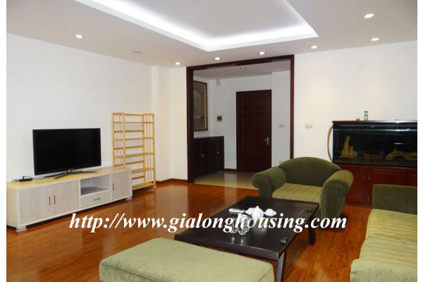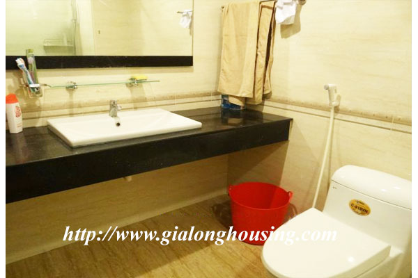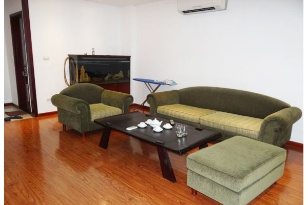 This is a large apartment in the serviced building for rent. The building is located in Truc Bach street, very close to Truc Bach lake, West lake district and Hanoi city center. The total area is 100 sq m with 01 bedroom and 02 bathrooms. All furniture are provided by the owner.