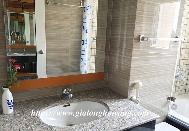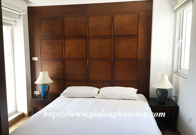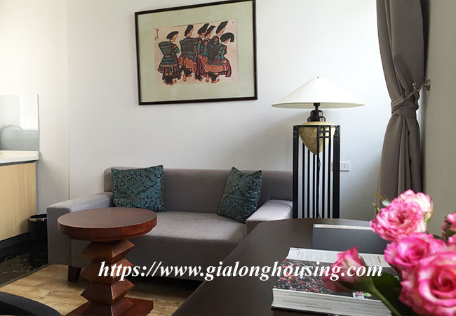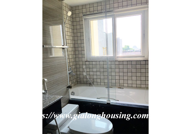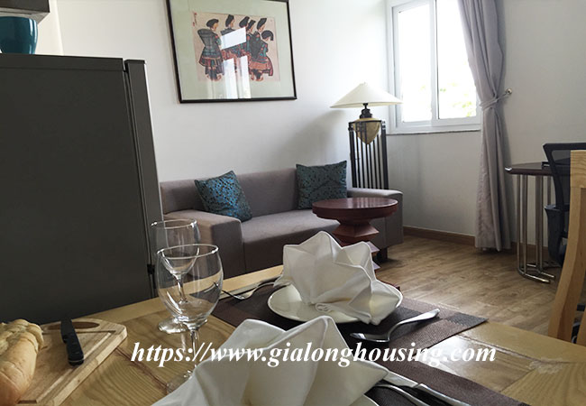This serviced apartment is fully furnished so that the tenants can move in immediately. The total area is 50 sq m, including 01 bedroom and 01 bathroom. The bathroom has a bathtub. The rent includes: tap water, cable TV, internet. The building has elevator, security and motorbike parking area.