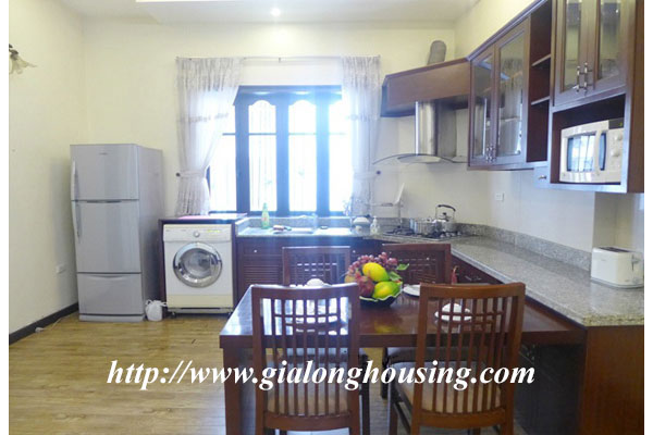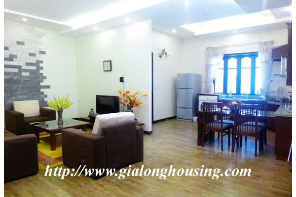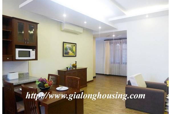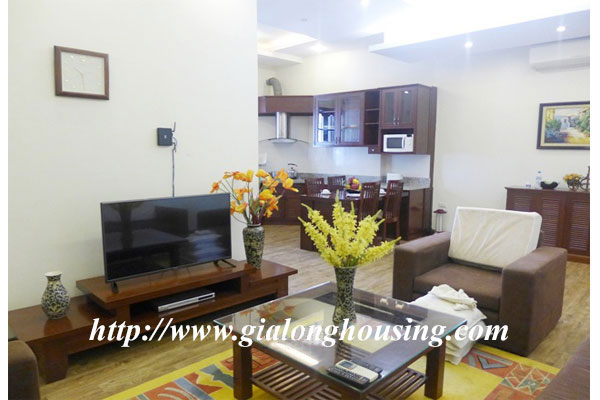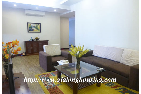 This is a very nice apartment in Tran Te Xuong street, Truc Bach area, Hanoi. The total area is 100 sq m with 02 bedrooms and 02 bathrooms. From the balcony, you can see the bustle and hustle of Hanoi City. All the furniture are fully provided by the landlord. Also, some services are included: tap water, wireless internet, cable TV