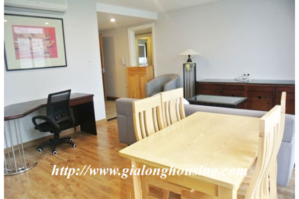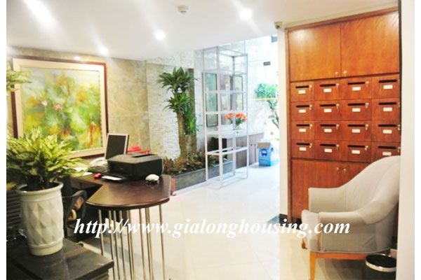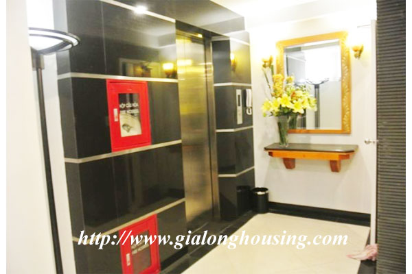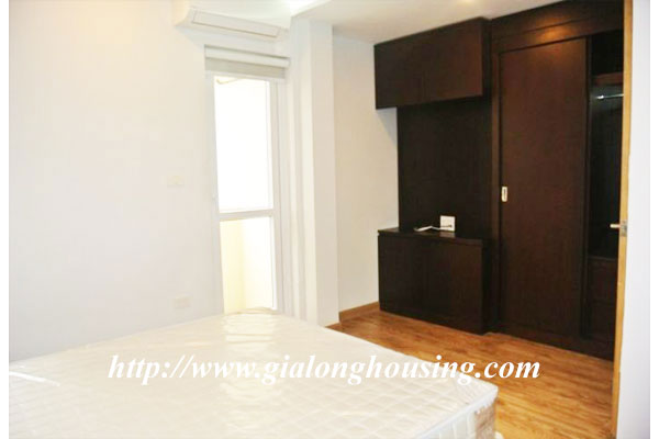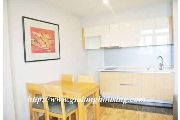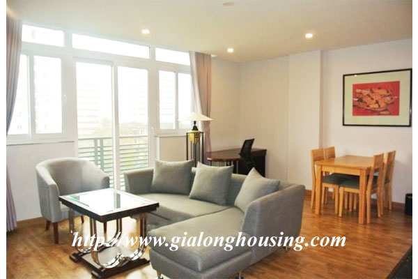 This is a very new serviced building for rent. It is quite close to Giang Vo lake, Lancaster building, Kim Ma street. The total area of one apartment is 60 sq m with 01 bedroom and 01 bathroom. The building offer you some services: receptionist, small bar and cafes, water, internet, cable TV.