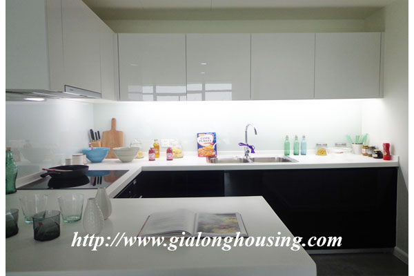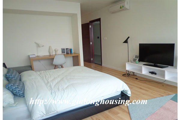 Full furnished two bedroom serviced apartment is located in Watermark Westlake Hanoi. It locates on the 3rd floor in Tower B of 18 stories building. The construction area is 120.15 sq.m. It is divided into 3 bedrooms, 2 bathrooms with bathtub. The whole floors are made from wood. The whole rooms have full nice furniture and equipment such as sofa set, kitchen utensils, bed sets, cabinet, washing machine
