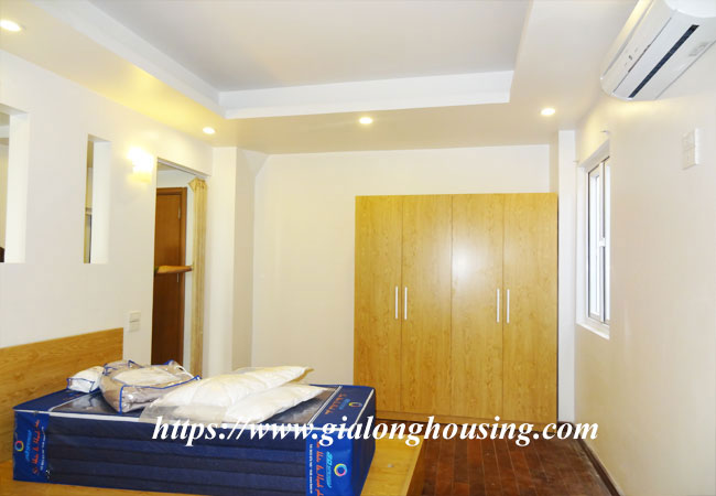 This one bedroom serviced apartment is located in Ham Long street, not far from Ham Long church and Phan Chu Trinh street. From the apartment, you just need some minutes to walk to Old Quarter. The total area of the apartment is 45 sq m, including one bedroom, one living room and kitchen area and one bathroom with shower. All rooms are bright due to glass windows.