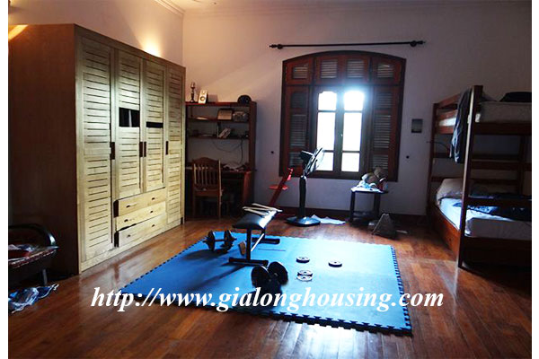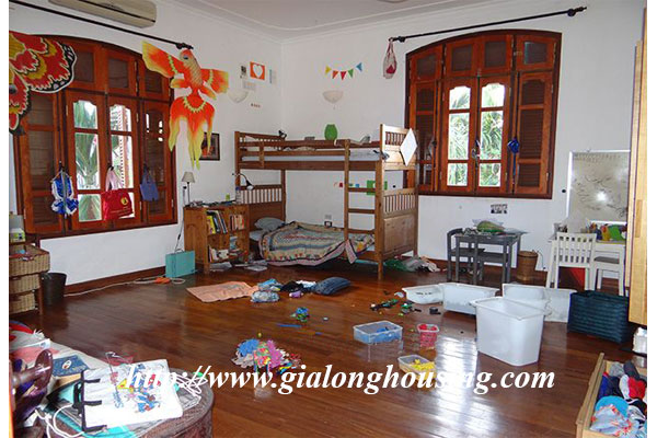 This a very big villa for rent in Tay Ho area. The total area is 300 sq m with 05 bedrooms and 05 bathrooms. It has a very big yard - playground for kids. All rooms are bright with large glass windows and wooden floor. It was fully furnished and the tenants could move in very soon. Located in a very safe and quiet alley, you can totally enjoy your staying time there.