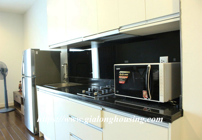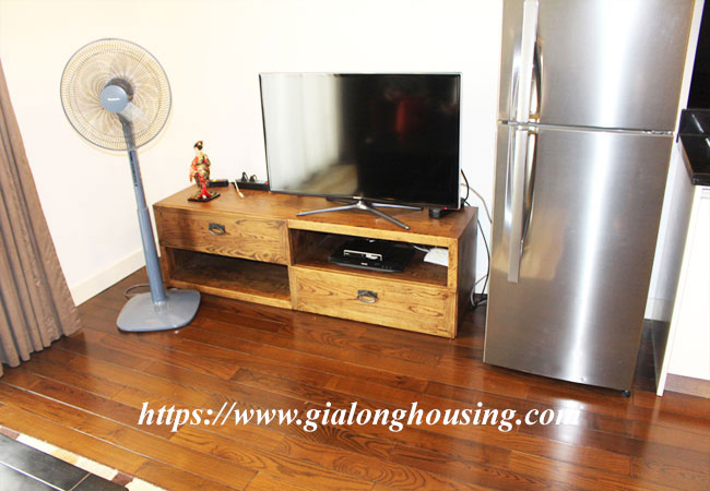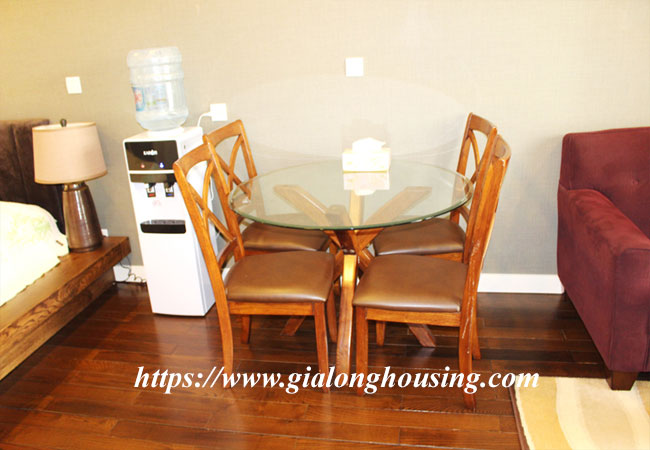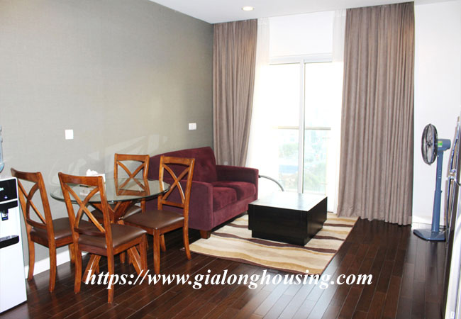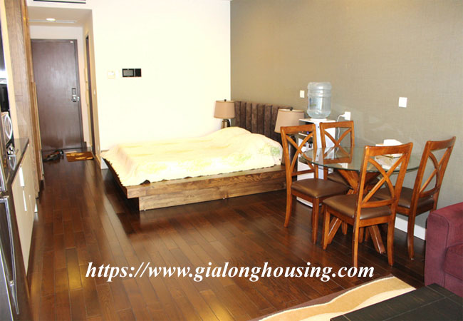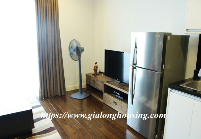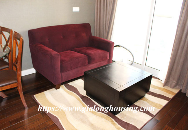 This is a small but cozy studio apartment in Lancaster building, 20 Nui Truc, Ba Dinh. The big building is very near France school, Lotteria. The building has supermarket and bakery on ground floor, swimming pool and reading room on 23rd floor. The security and reception work 24/24. The total area of the apartment is 45 sq m. It is fully furnished and the tenants can move in immediately.