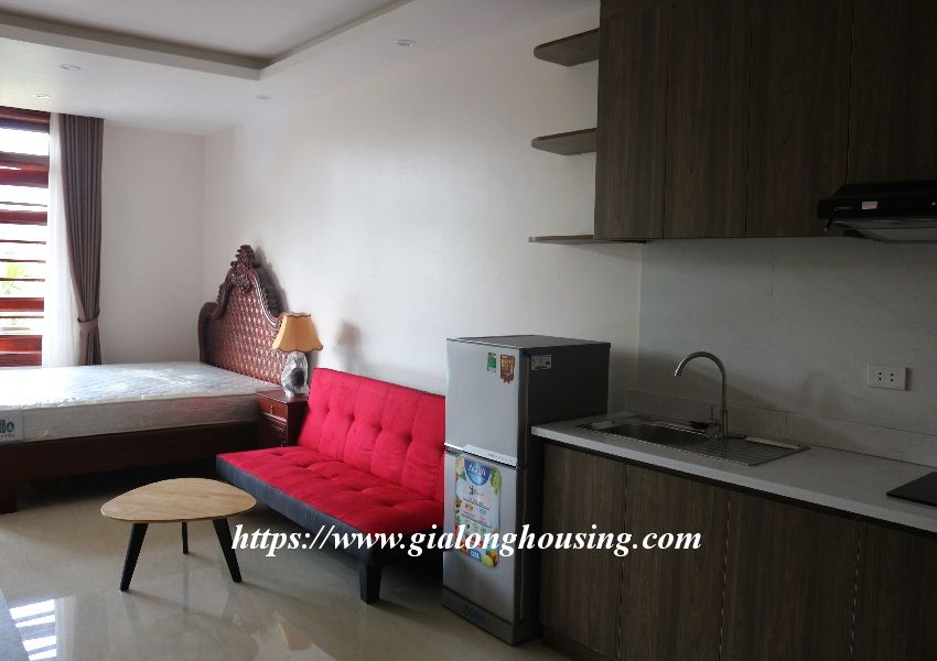 The new and nice studio is located on 4th floor of the building in lane 12 Dang Thai Mai. The total area is 50 sq m, including all rooms in one. The apartment is flooded by the natural sunlight and fresh air. It takes a few minutes to walk to the main street, West lake and restaurants.