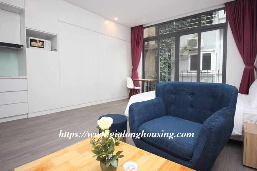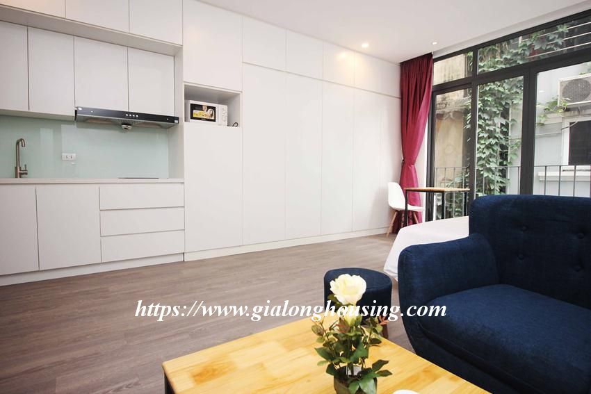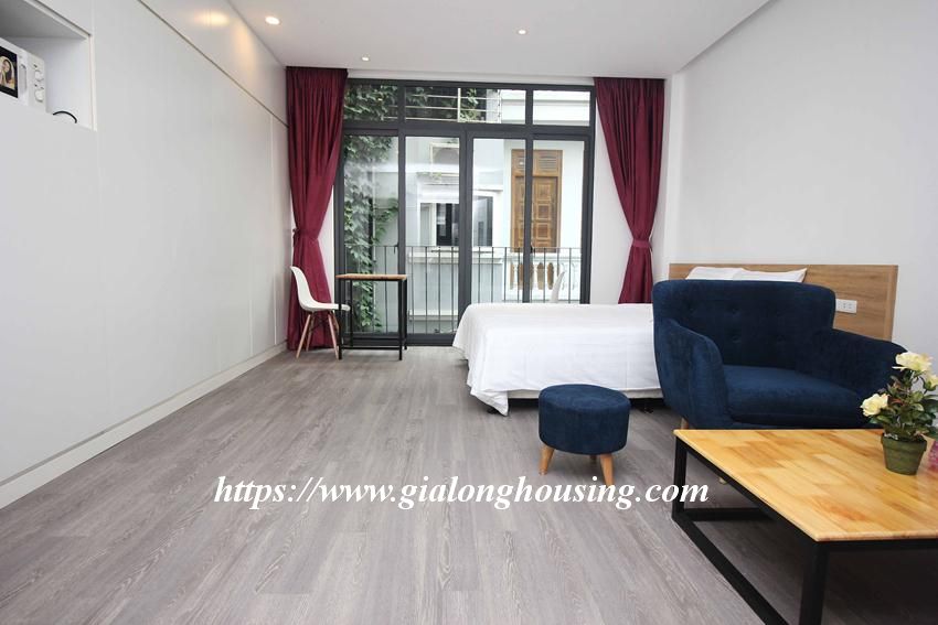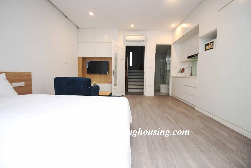 This brand new studio is located in a crowded street, not far from West lake and city center. The total area is 30 sq m, with all rooms in one. The building has one common room and a nice rooftop area where you can enjoy the sunlight and cool wind from West lake