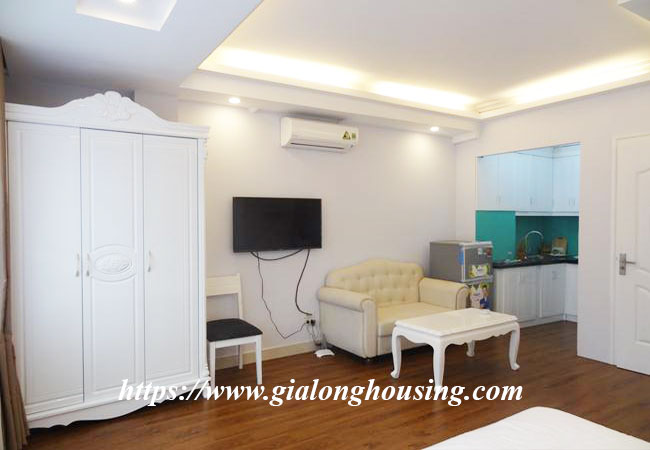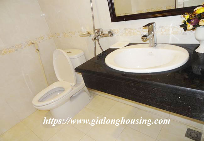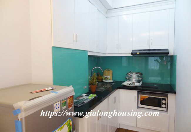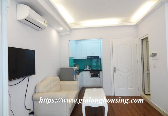 Cozy apartment for rent is in Trung Kinh, near Tran Duy Hung street. The total area is 50 sq m It is fully furnished with air-conditioner, water heaters, small sofa, bed, mattress, sheet, kitchen cabinet, electricity cooker etc. From the bedroom window, it has a fine view of city. It’s very quiet and clean.