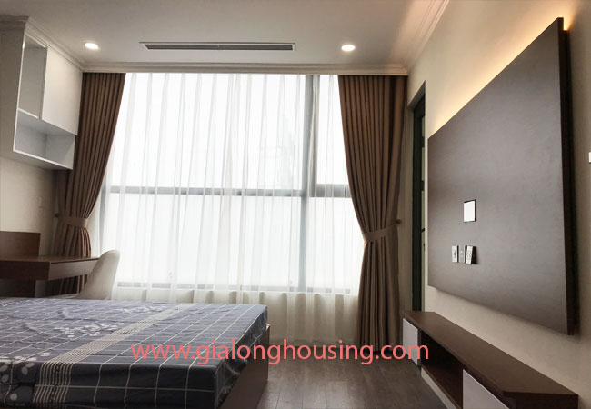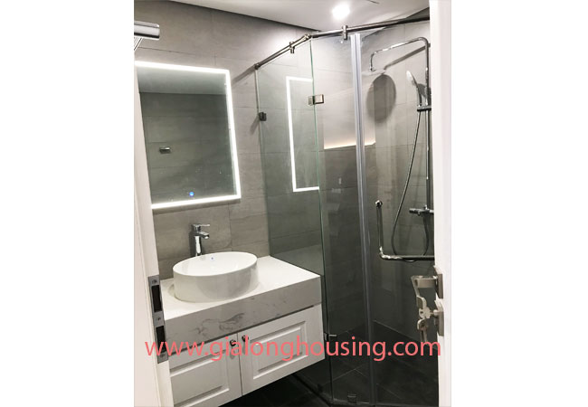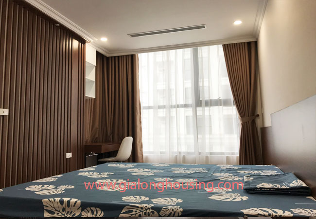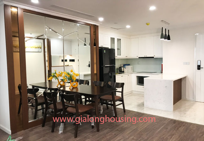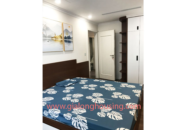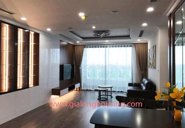 Sunshine Riverside 3 bedroom apartment for rent. This apartment has a living room, 3 bedroom,2 bathrooms, a kitchen with dining area and a small balcony. It comes with modern and beautiful furniture. The plus point is the house comes with a smart home app, centralized ACs, wooden floor whole unit, a green plan in balcony, and viewing to swimming pool.