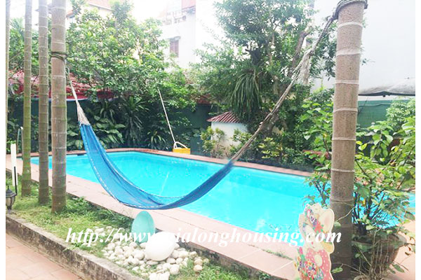 This is a very nice villa in Tay Ho district for rent. The highlight of that accommodation is a swimming pool and a large garden with many green trees for rent. The total area is up to 280 sq m. There are 05 bedrooms and 03 bathrooms. All furniture are in good condition and suitable for all tenants.
